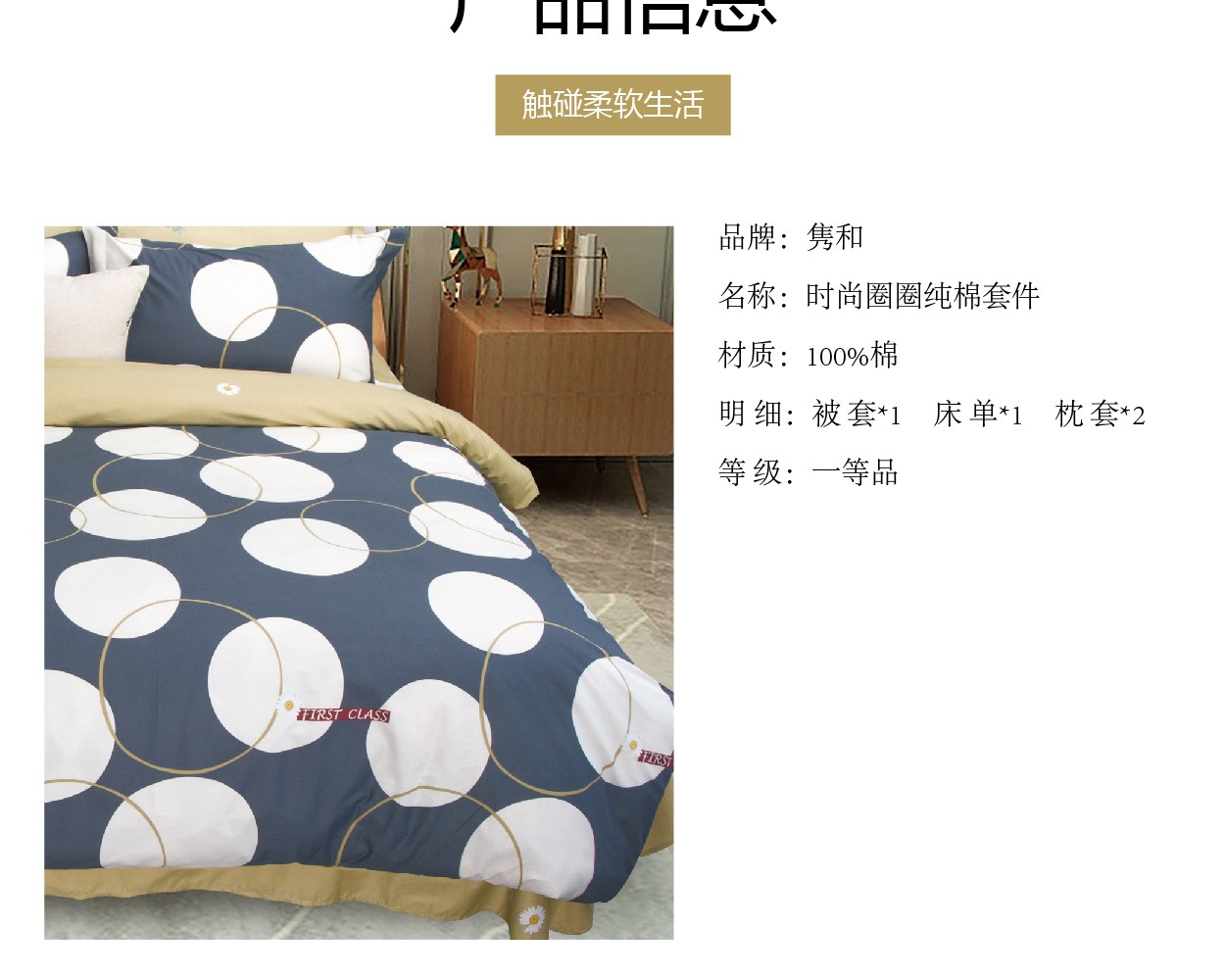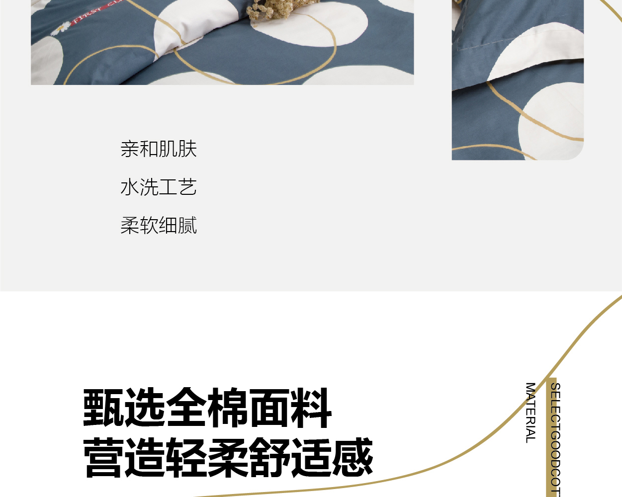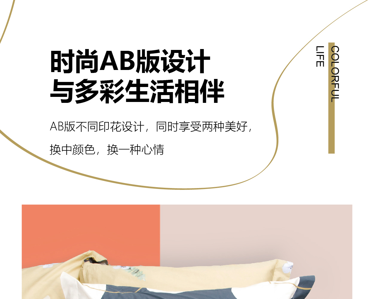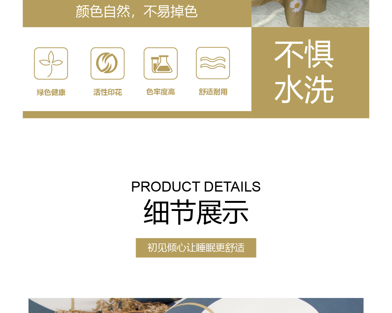 描述:100%纯棉面料,环保活性印花工艺,精选品质面料亲肤 气,柔软细腻,色牢度高不易褪色舒适耐用