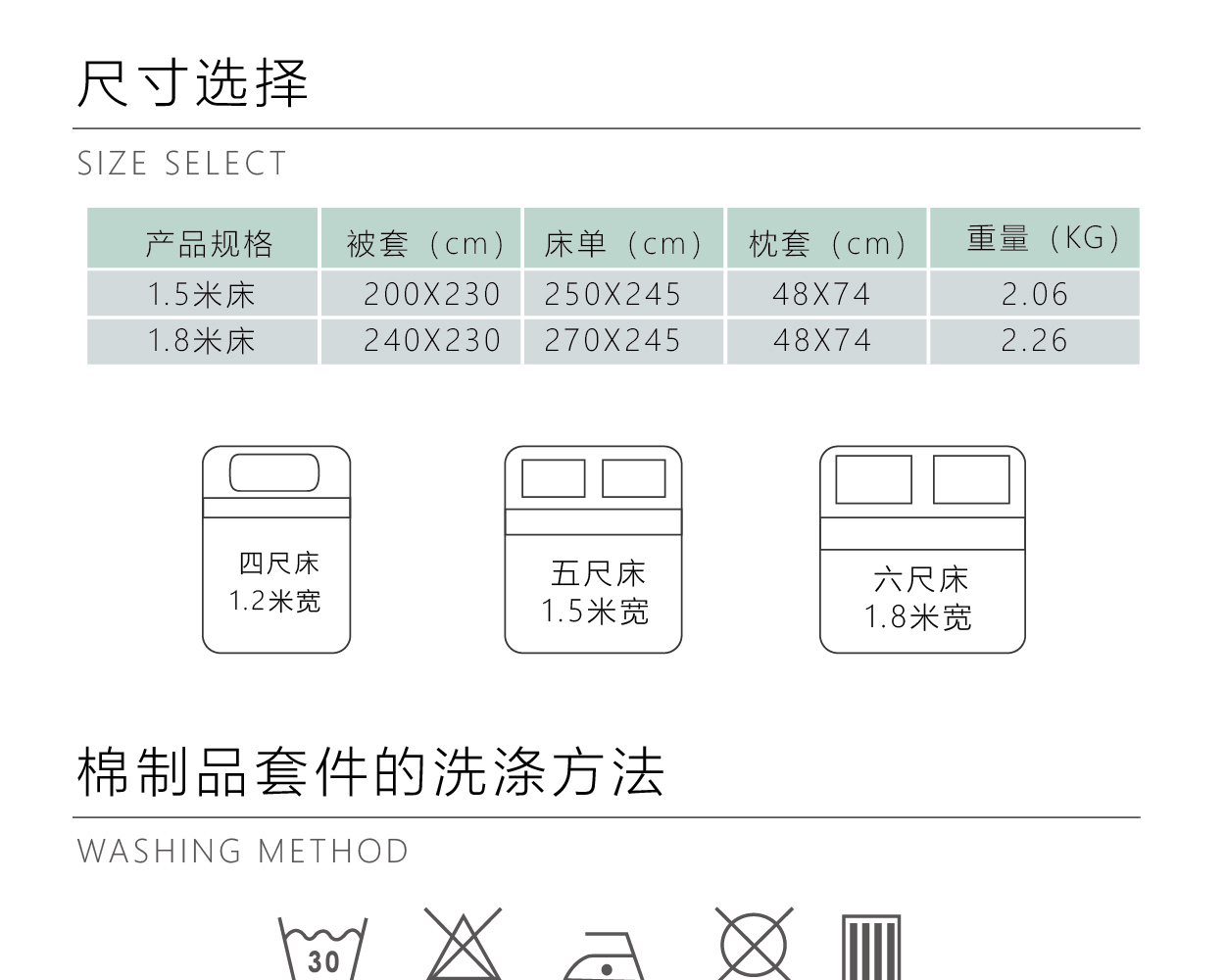 产品规格:200*230cm(1.5米床),220*240cm(1.8米床)