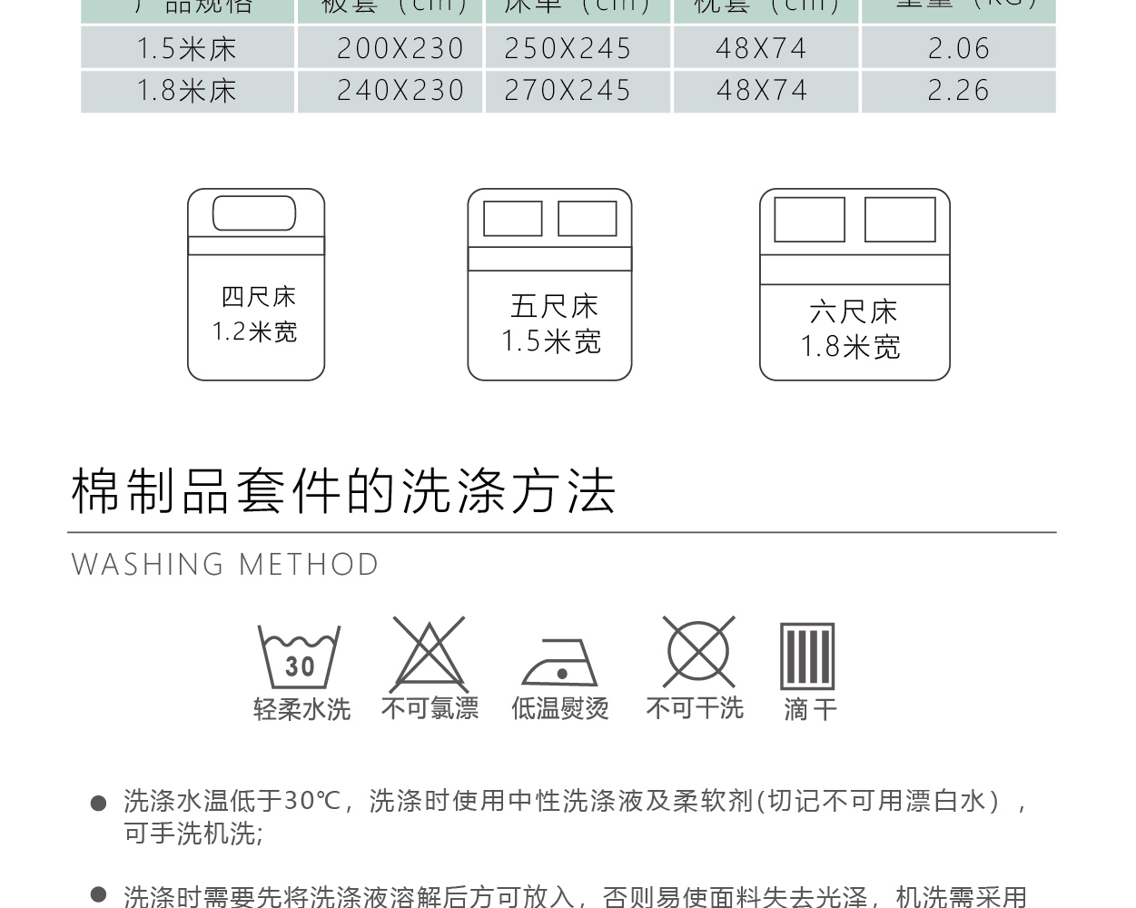 产品规格:200*230cm(1.5米床),240*220cm(1.8米床)