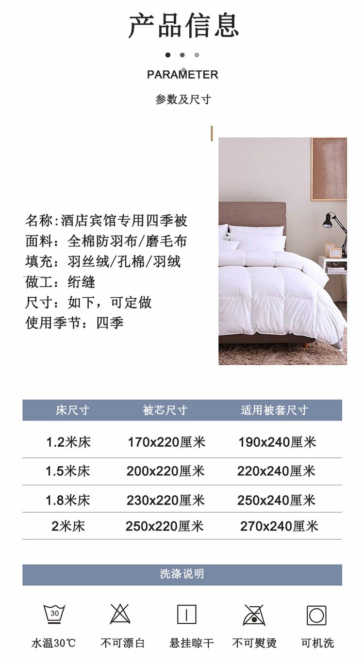 酒店专用四季被(可填羽丝绒|孔棉|羽绒)