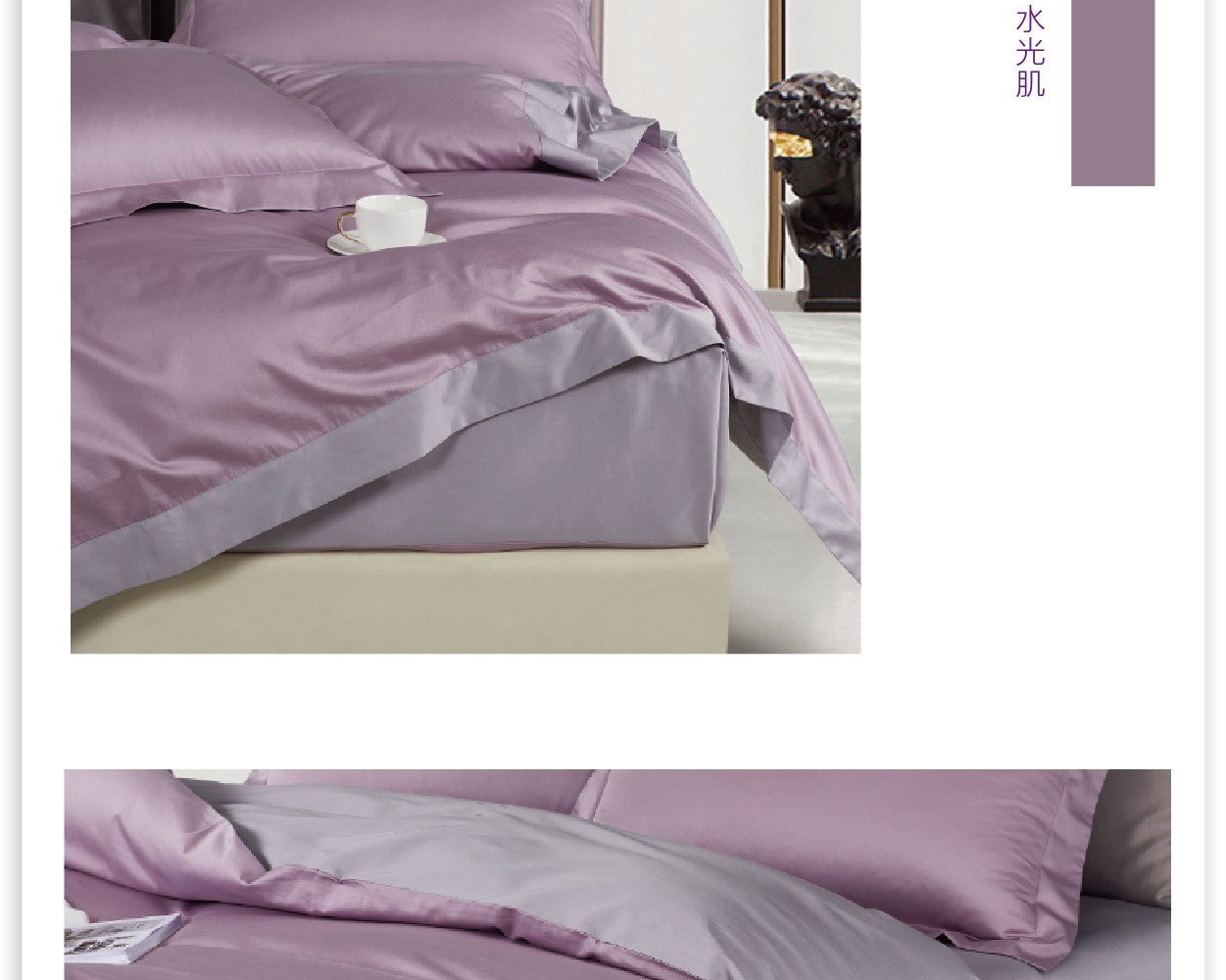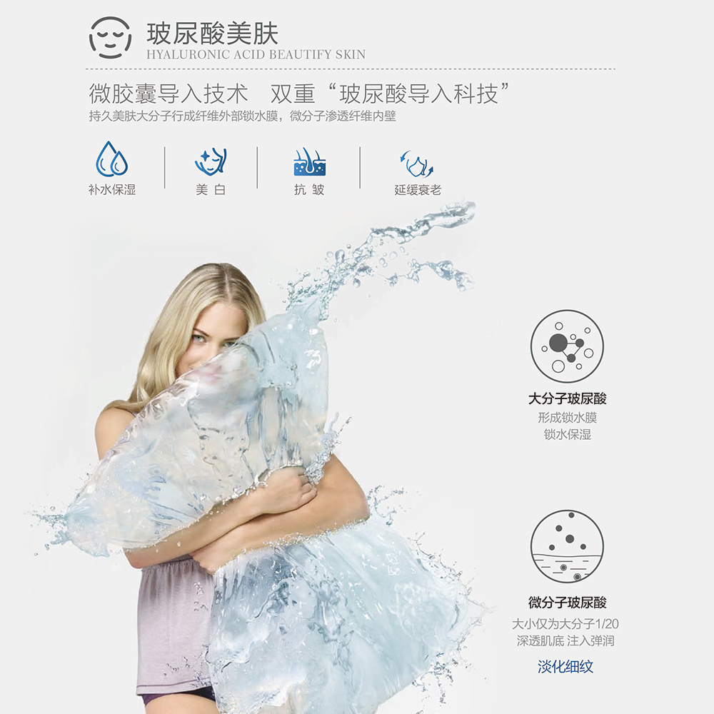 描述:环保印染,缎纹织造,柔滑舒适;并含有玻尿酸美容功效,玻尿酸睡出水光肌.新中产新概念,看似简约其实高阶;演绎高阶都市生活,越看越耐看的高级棉感,只为更尊重生活品质的态度,活出自我格调;